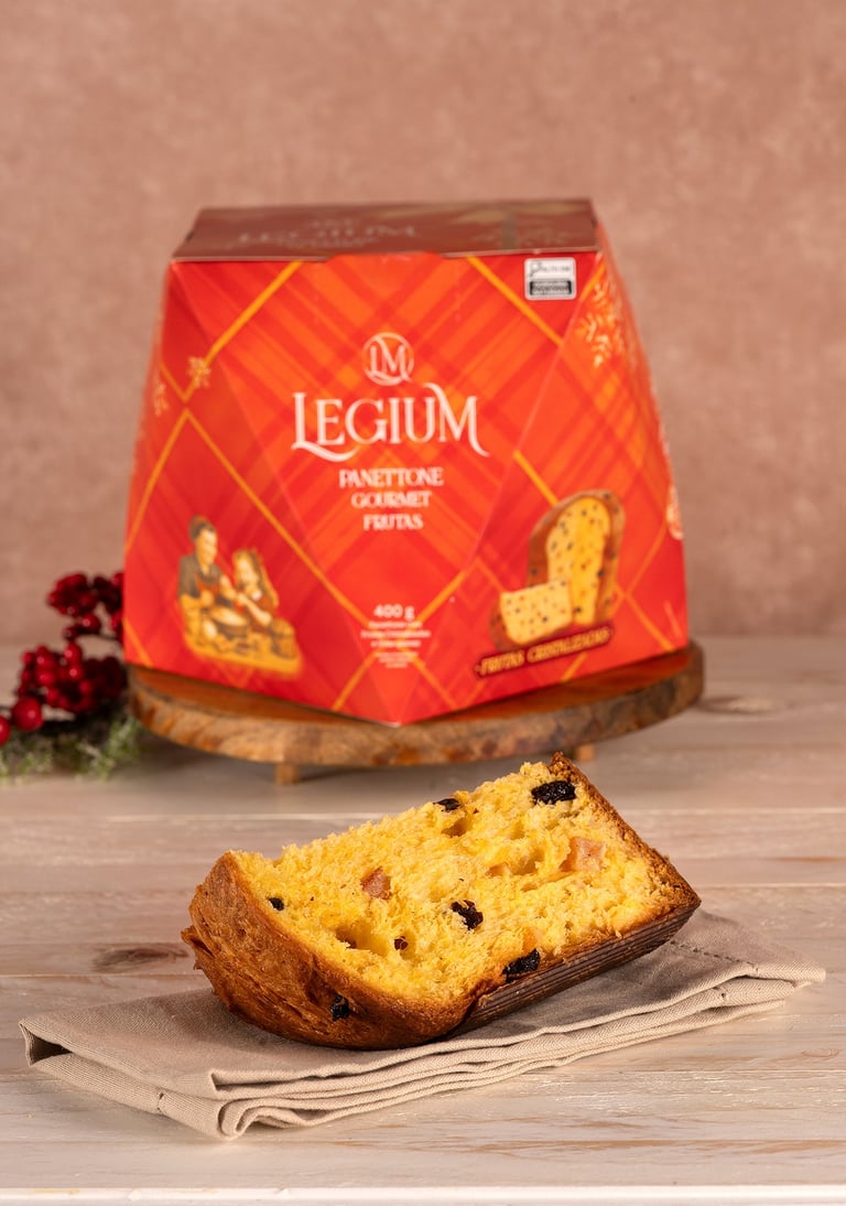 O Legium é um panettone feito artesanalmente, com fermentação natural lenta e massa madre, que garante leveza, maciez e sabor incomparável.